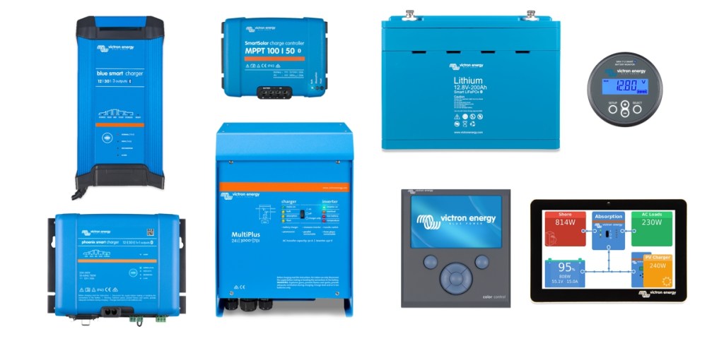 We regularly design systems using Victron products. We supply and install the whole range from battery chargers, inverters, battery monitors, solar controllers and Lithium Iron battery systems